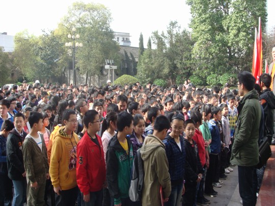 3月24日上午,2014级700余名师生在胡大孝、余富强等领导的组织带领下参观了邱少云烈士纪念馆。通过“听讲解员的解说、观看英雄事迹短片、收集感人故事、歌唱爱国歌曲、在纪念碑前庄严宣誓”的活动,全体师生了解了邱少云烈士一生的光辉事迹,被他的集体主义、严守纪律的顽强意志和高度的自我牺牲精神深深震撼,同学们为此力争做同龄人的守纪楷模。同时温暖的阳光、飘扬的红旗、愉快的欢笑也丰富了精神文化,让周末留校更有意义。