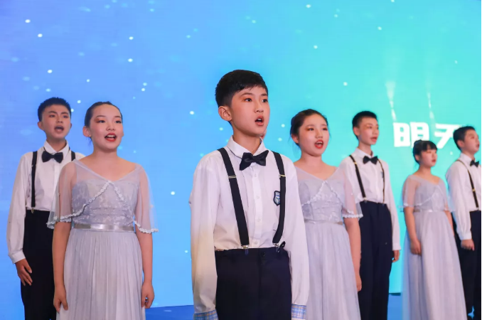 在毕业典礼上,孩子和老师们表演了精心准备的器乐合奏、舞蹈、英语剧、合唱等节目。