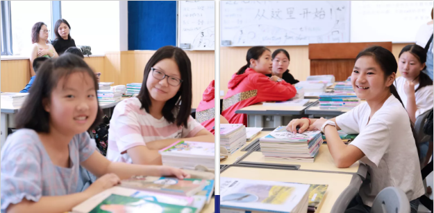 而前一晚,老师们在教室里的小惊喜,陆续被同学们点亮:在班级树上签字,正式成为巴川量子的初中成员;在留言区写下对初中生活期望,和新同学一起拍下初中教室的第一张照片;打开红丝带包扎的新课本,拆开生日礼物般的仪式感让人感到温暖……