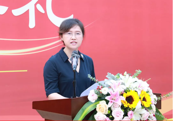 ▲汪秀娟老师作为教师代表进行发言,她鼓励同学们“汲取养分,储备知识,积蓄力量,追寻梦想”。