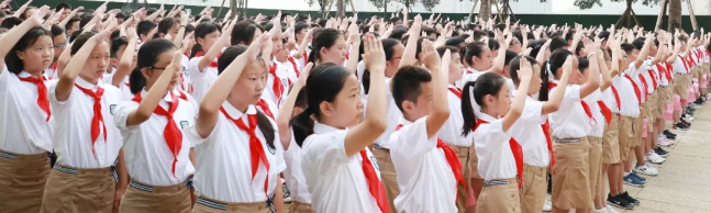 国旗飘扬,书声琅琅,“我与祖国共成长”余音袅袅。
