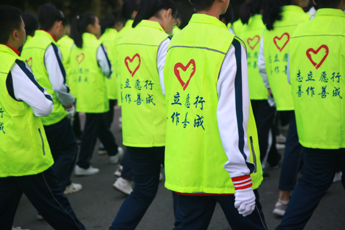 志愿者们有序地为同学们默默服务着,每个志愿者都是一朵花,他们盛开在学校的各个角落,为他人开一朵花,秋日的风变得温柔,在每个需要帮助的地方,他们都在!微笑是他们娇艳的容颜,真诚是他们瑰丽的色彩,奉献是他们摇曳的身姿,爱心是他们迷人的芬芳,他们盛开需要帮助的地方!