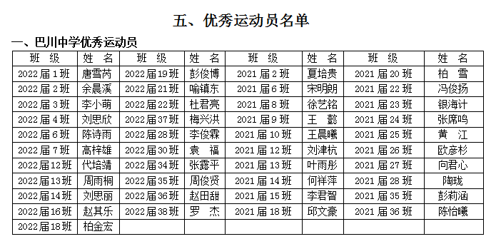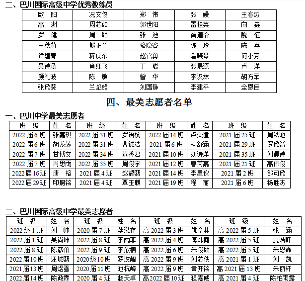 五、最美志愿者名单 六、优秀运动员名单