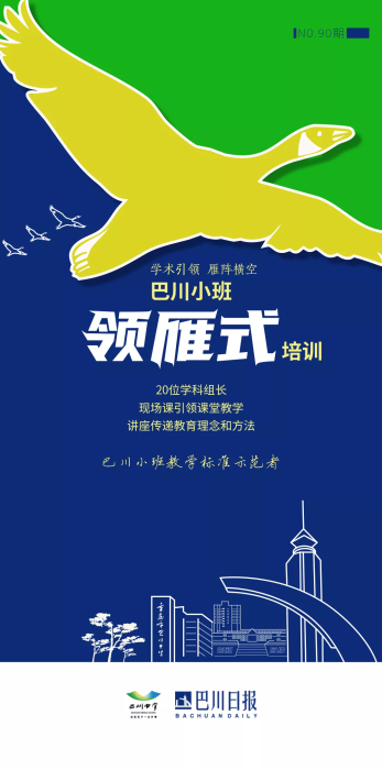 从今年4月开始到下学期11月,巴川“领雁式”培训将在半年多的常态化持续开展中,组织学科组长、学科行政干部、校级名师三级队伍陆续担当“头雁”角色,进而完成对全校教师梯队的整体覆盖。