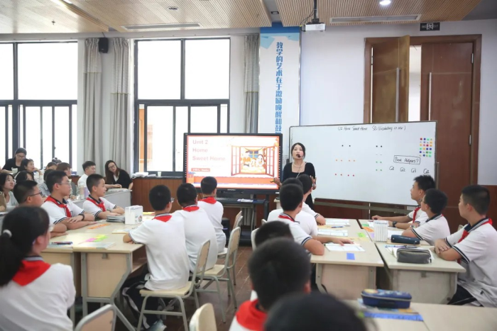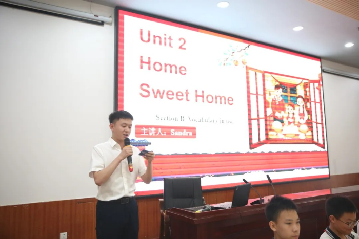 同一天下午,同一间教室,初中英语教师袁梦的课堂则充满了活力。围绕“U2 Home Sweet Home”主题,袁老师通过游戏与情景任务,将词汇学习融入真实语境。使课堂超越语言学习,成为一次情感与文化熏陶。随后,巴川清北教学部教研组长程小芳老师深入点评,阐释了如何让词汇教学实现“词‘境’其意”。