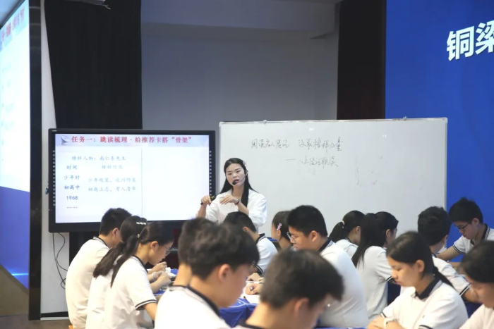 而在学术报告厅,初中语文教师李惠萍的《阅读名人传记·汲取榜样力量》联读课,则以“制作人物推荐卡”为任务驱动,将两篇传记有机整合,展现了“大单元教学”的迷人魅力。让学生在真实情境中运用语言、锤炼思维、涵养品格。