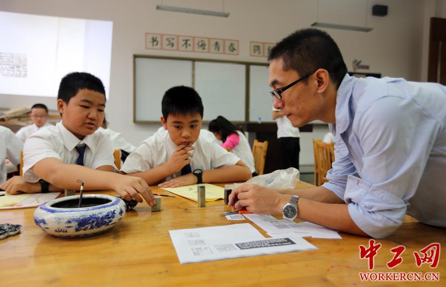 重庆市巴川中学全面践行“关爱每一位学生,为孩子的终身发展奠基,成就孩子一生梦想”的办学理念,全面发展、快乐成长的办学思想,形成了“有规划、有教研、有教材、有阵地、有评价”的“五有”德育教学特色,在教育领域方面,学校先后跨入初中小班教育,国际教育和新高中教育领域,为广大学生和家长提供多元和更高层次的教育选择。以“年均99.3%升入全市重点高中、79.2%的毕业生在高中阶段担任班干部”的突出成绩,教学成果多次在全市、全国成功展示,获得广泛赞誉。图为巴川中学美术课标改革实行的美术课上,学习中国书法教学的小班教室里的师生。(中工网记者 毛邓摄)