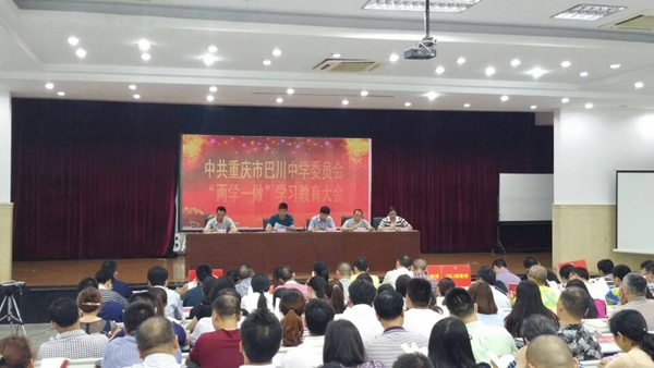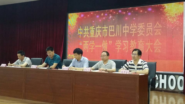 巴川中学讯(通讯员 李杰)6月3日下午第四节课,我校初中部党委在博雅楼阶梯教室组织召开全体党员大会,布置“两学一做”学习教育活动。大会由初中部党委纪律检查委员胡大孝同志主持,宗和才、周文强、杨小红、刘开全等学校领导参加本次大会,并在主席台就坐。