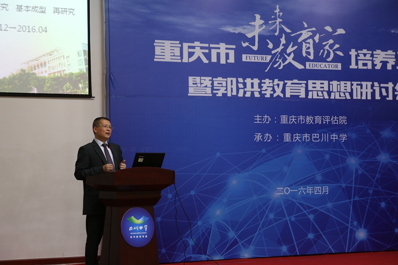 4月19日,重庆市未来教育家培养工作暨郭洪教育思想研讨会在重庆市巴川中学校召开。市教委师范处处长李源田、市教育评估院院长龚春燕、副院长沈军等相关领导以及重庆市未来教育家培养对象成员参加会议。