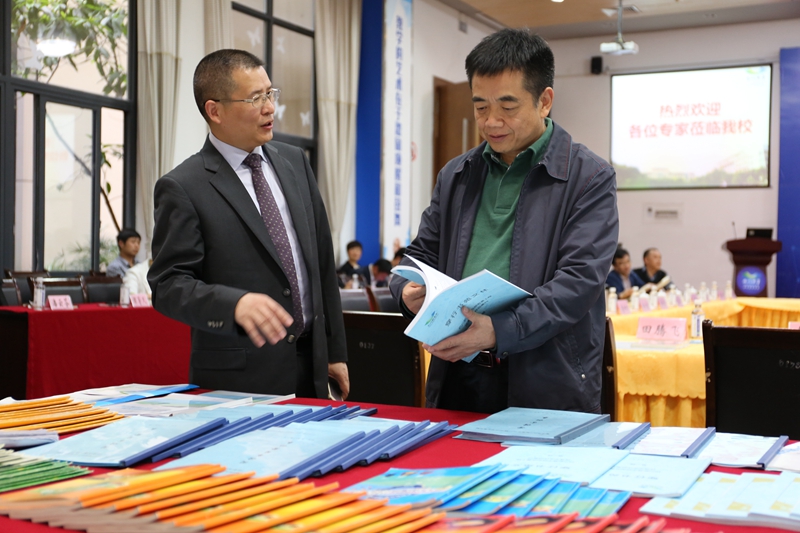 市教委师范处处长李源田翻阅自主教育材料