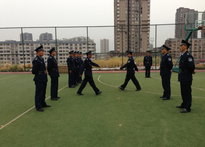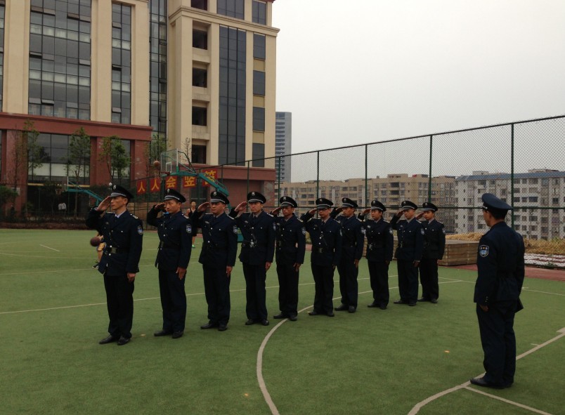 为了外树形象,内强素质,确保全校师生的安全,我校加强了学校保安队伍的建设。我校除了坚持每周召开保安工作例会,对保安进行思想引领和业务培训以外,还坚持利用每周星期五下午进行训练。