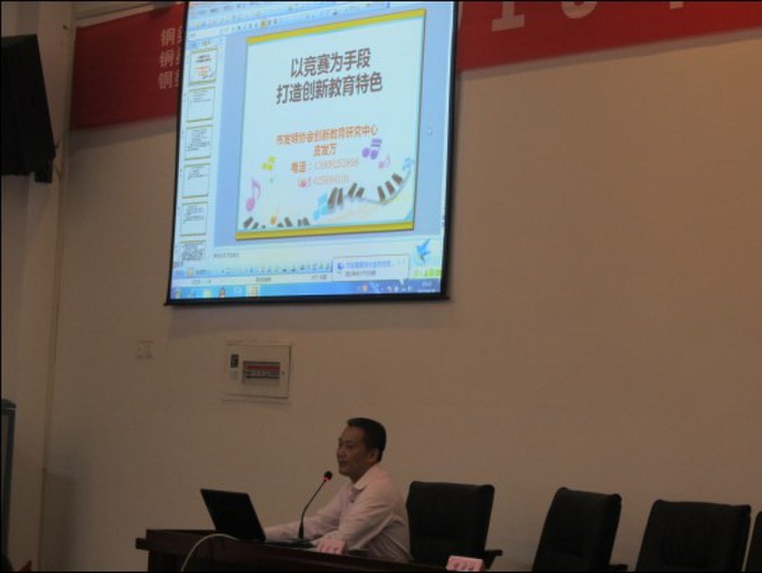 下午,举行专家讲座,主要进行青少年科技创新知识培训,其中皮发万(重庆市发明协会创新教育研究中心主任 、宋庆龄少儿发明奖重庆赛区评奖负责人,著有创新小学、初中、高中、教师系列读物)作了《以创新竞赛为手段,提高青少年科技创新水平》的报告,况成林(重庆市发明协会创新教育研究中心研究员,发明家多项发明被转化为市场生产力)作了《设问型创新法》的报告。