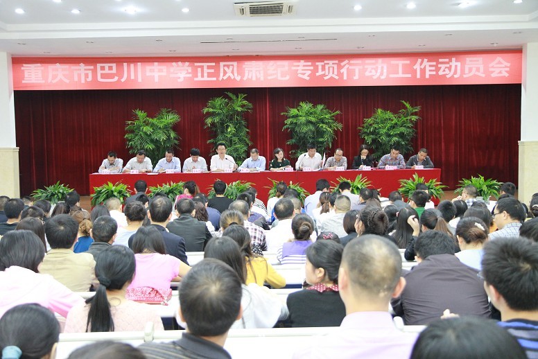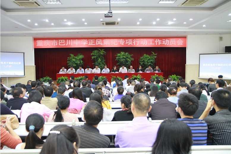 重庆巴川中学讯(李杰)9月29日下午,重庆市巴川中学组织召开了正风肃纪专项行动工作动员会,全校教职员工参加了动员会。