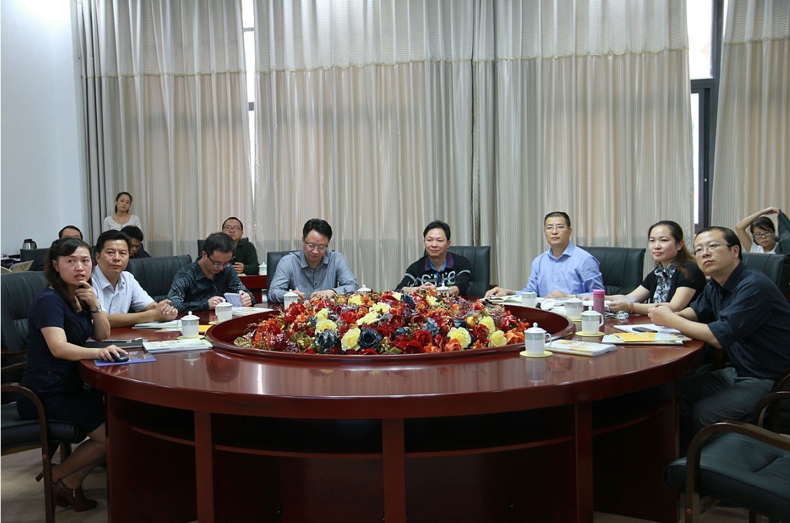 宾主双方共同研讨教育改革,巴川小班校长潘云芬(左一)作情况介绍