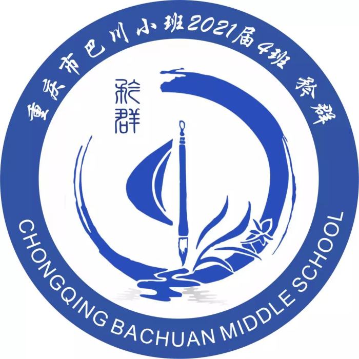 蓝色调象征同学们学习严谨、生活积极的态度。毛笔指代小四班学子以笔代矛,为梦而战。毛笔墨迹为草书“今”,象征勤勉于今。四片叶子分别代表“乐学”、“善思”、“强志”“达智”的四条班训。