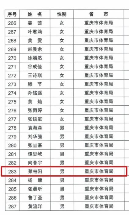 “去年刚去集训的时候,他还会跟我们说,训练蛮轻松的。”蔡柏阳在巴川中学的教练郑鹏回忆,去年体育总局在全国范围内跨界跨项跨季选材,铜梁区初选了8名运动员到重庆选拔点参加选拔,他的学生蔡柏阳成功入选。郑鹏说,刚去集训队的时候,主要是一些身体恢复训练,这对蔡柏阳来说自然不在话下。