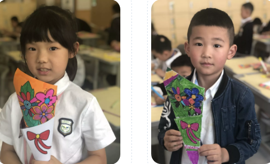 今年的母亲节,小朋友们为妈妈准备了亲手绘制的康乃馨花朵。
