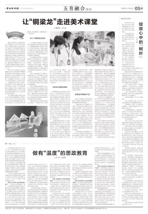 近日,巴川中学美术教师詹媛媛、罗大瑶撰写的《让“铜梁龙”走进美术课堂》被《中国教师报》刊登,向全国读者详细介绍了巴川中学将“铜梁龙”引入美术教学的过程和做法。