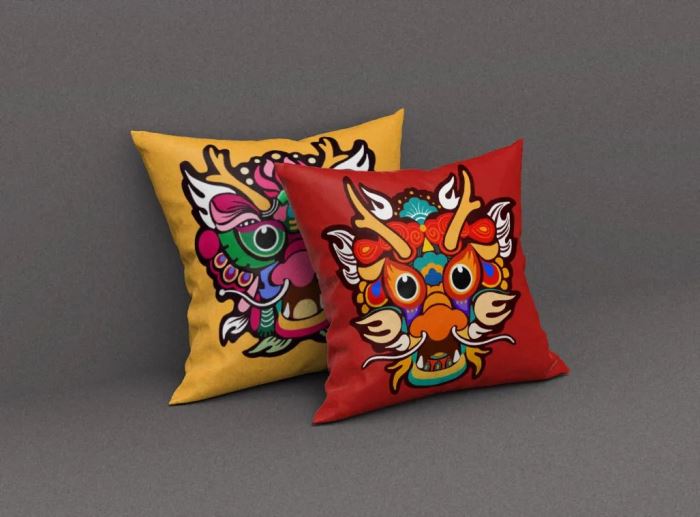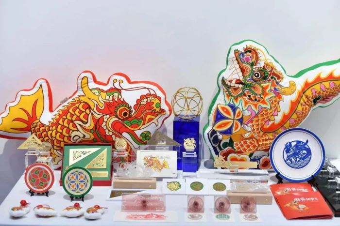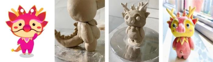 根据铜梁龙的造型特征,教师开始了一系列图案创作和文创产品设计活动,共分为5个组,分别对应龙的吉祥图案、剪纸图案、印章印面图案、织物图案、立体图等方面:采用印刷工艺,为礼品包装、红包、团扇面等创作吉祥图案,制作出来的红包成为学校的新年礼物;将剪纸图案“鱼跃龙门”应用于文具系列设计制作;通过肖形印印面课带领学生制作龙虎肖形印;为铜梁设计竞技龙、火龙、荷花龙等系列铜梁城市IP形象,印制在抱枕、四件套、口罩等产品上,为生活增添民间喜庆色彩;用陶瓷土创作立体龙造型,烧制出一系列茶具……