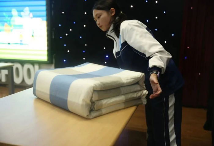 刚到寝室时有些不太适应,调整心态改变以往的生活习惯后有了好转。这个过程中生活老师给了我很大的帮助,像初一时有次清洁没做好回去重新做,生活老师就跟我一起,一点点告诉我做清洁的要点,让我融入到寝室生活中。