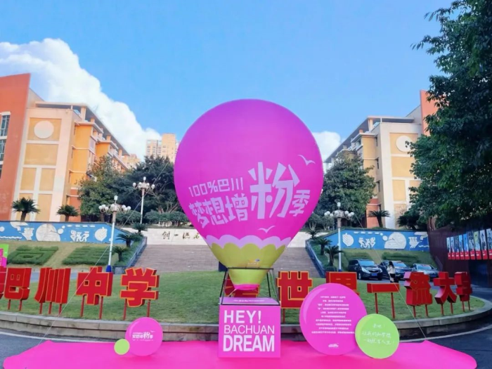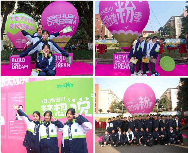 上学期,巴川中学举行了一场全体学子书写梦想的活动。本学期伊始,学校将同学们的梦想通过海报、气球、道旗等形式在校园中进行展示。100%巴川,梦想增“粉”季,让每一个梦想,每一个有梦想的追梦人都成为被“粉”的对象。而粉色,也成为了装点新学期巴川中学的第一抹亮色。