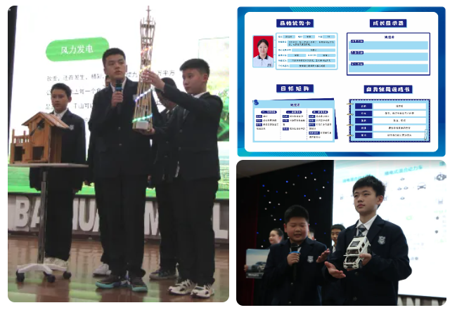 在STEAM创新教育学部,成长是看得见的“星链轨迹”,学生展开了一场从内在探索到外部实践的立体化学习革命。《成长密码》项目,有人打算“每周读完一本历史书”,有人立志“突破800米跑纪录”;通过“感恩明信片”有同学发现“细心倾听”竟是别人最欣赏的特质;编程少年计划开发“盲道导航App”;“成长立体书”,是可见证的“进步里程碑”……