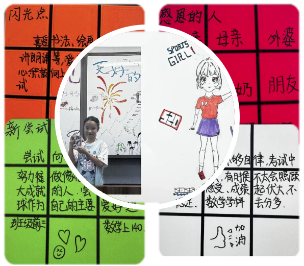 龚凤淳老师一句“为什么背单词总忘?”点燃全班探索欲:“专注力突击队”发现闭眼默念效率提升30%;“时间管理组”用“天计划+周打卡”拆解目标,数据可视化追踪进步;“心态调节营”设计“情绪能量瓶”,集体破解焦虑密码。