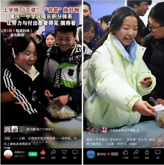 视频迅速刷屏,网友感叹:“成长币成了看得见的成长刻度”、“这才是真正的肯定式教育”、“用心用情,让树成为树,花成为花”……