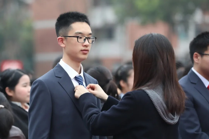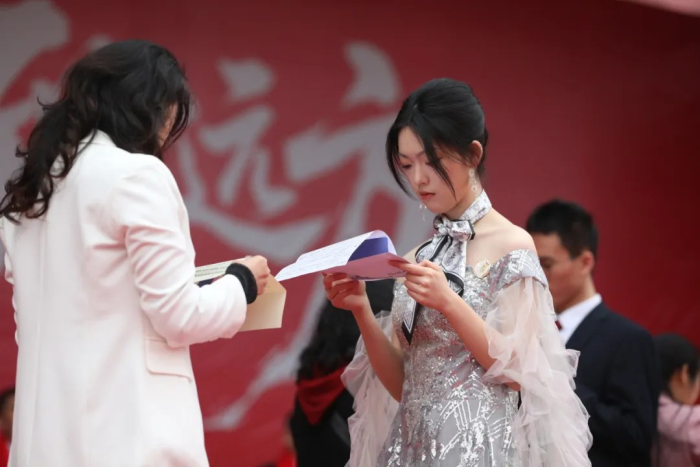 家长代表汪芷衣妈妈的话道出所有父母心声:“亲爱的孩子们,谢谢你们来到我们身边,成为我们的珍宝。”她说那个在书山里伏案、在晨光暮色中奔赴、疲惫中咬牙坚持的平凡少年,是她全部的骄傲。