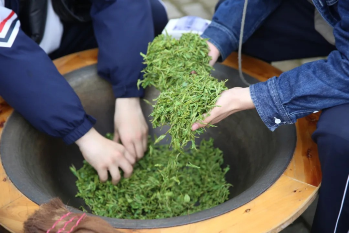 非遗工坊内,他们亲手揉捻炒制,看鲜叶在掌心蜕变,体悟劳动的耐心与匠心。